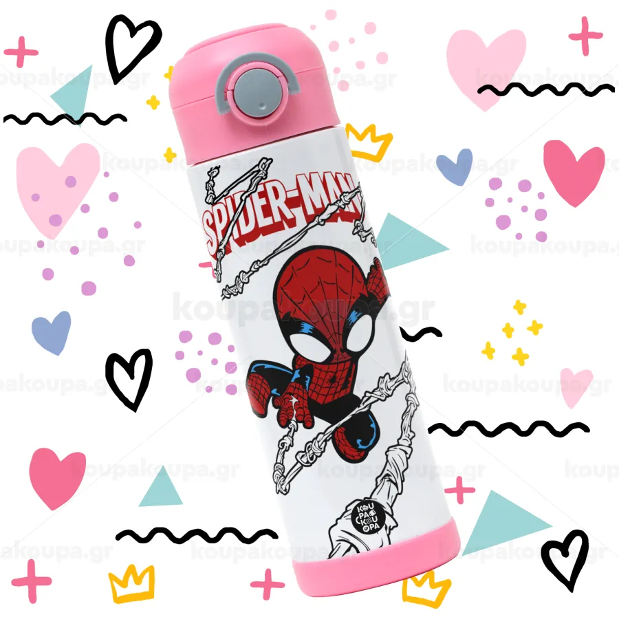 Spiderman kid, Πασχαλινή Λαμπάδα με Παιδικό παγούρι θερμό, ανοξείδωτο, με καλαμάκι ασφαλείας, ΡΟΖ (500ml)