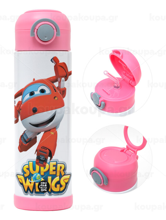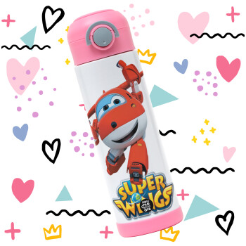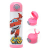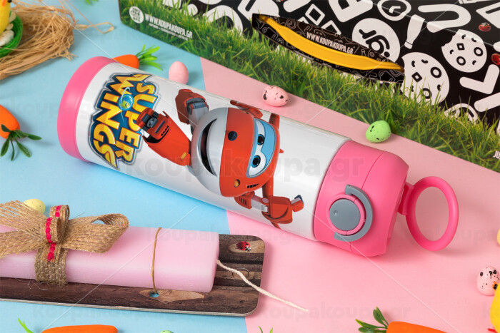 Super Wings, Πασχαλινή Λαμπάδα με Παιδικό παγούρι θερμό, ανοξείδωτο, με καλαμάκι ασφαλείας, ΡΟΖ (500ml)