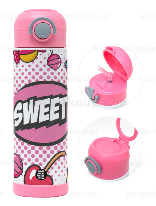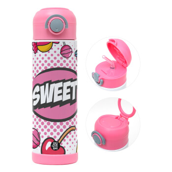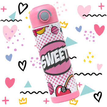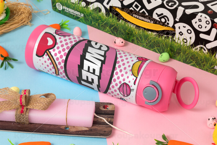 SWEET, Πασχαλινή Λαμπάδα με Παιδικό παγούρι θερμό, ανοξείδωτο, με καλαμάκι ασφαλείας, ΡΟΖ (500ml)