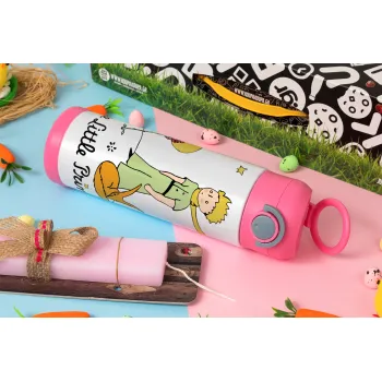 Ο μικρός πρίγκιπας classic, Πασχαλινή Λαμπάδα με Παιδικό παγούρι θερμό, ανοξείδωτο, με καλαμάκι ασφαλείας, ΡΟΖ (500ml)