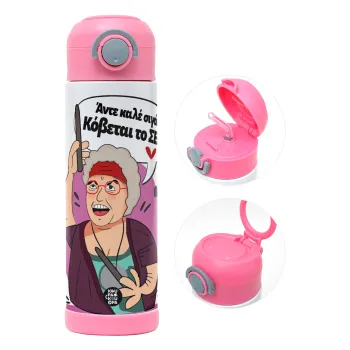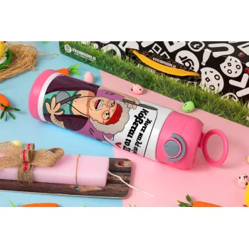 Αντε καλέ, σιγά, κόβεται το σέξ ;, Πασχαλινή Λαμπάδα με Παιδικό παγούρι θερμό, ανοξείδωτο, με καλαμάκι ασφαλείας, ΡΟΖ (500ml)