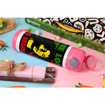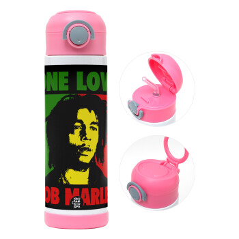Bob marley, one love, Πασχαλινή Λαμπάδα με Παιδικό παγούρι θερμό, ανοξείδωτο, με καλαμάκι ασφαλείας, ΡΟΖ (500ml)