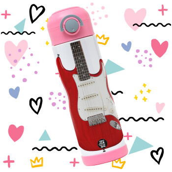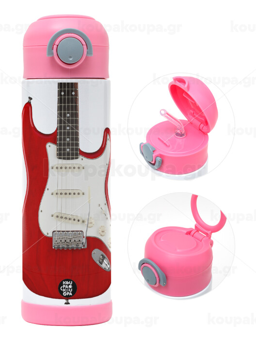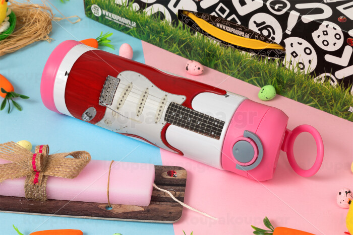 Guitar stratocaster, Πασχαλινή Λαμπάδα με Παιδικό παγούρι θερμό, ανοξείδωτο, με καλαμάκι ασφαλείας, ΡΟΖ (500ml)