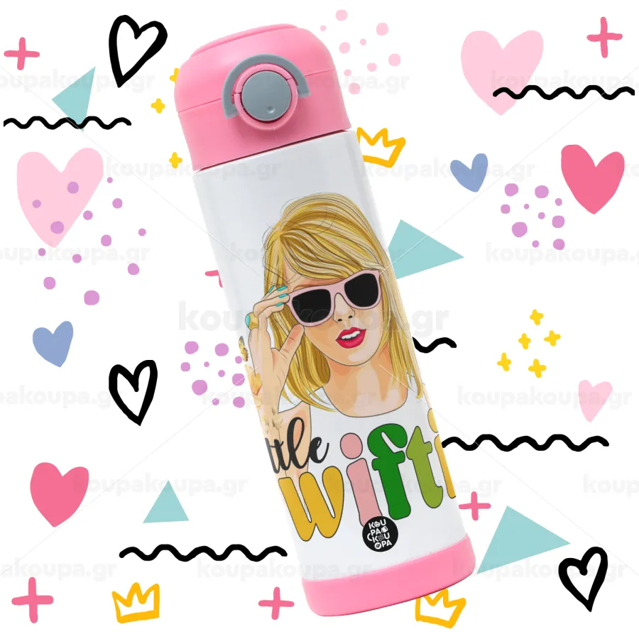 Little Swiftie, Πασχαλινή Λαμπάδα με Παιδικό παγούρι θερμό, ανοξείδωτο, με καλαμάκι ασφαλείας, ΡΟΖ (500ml)