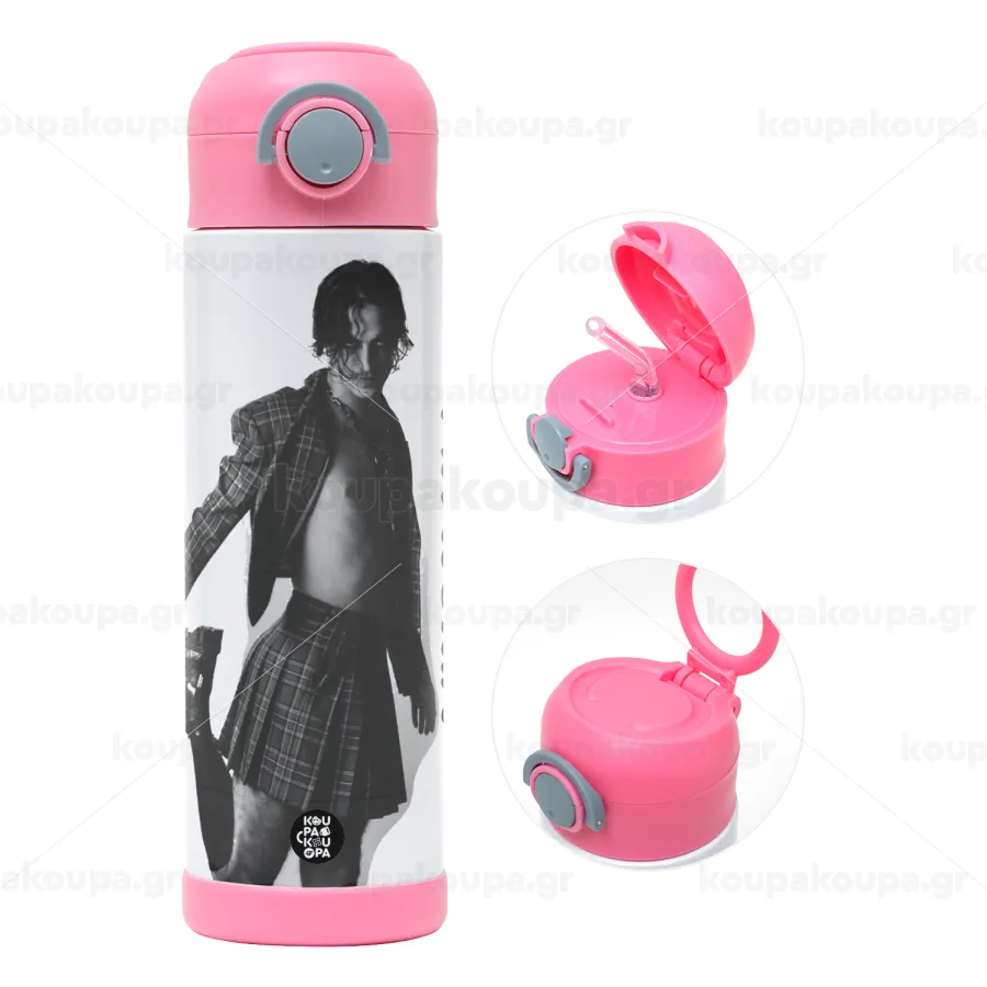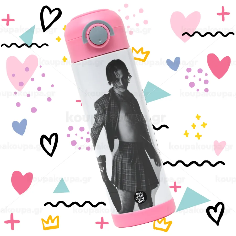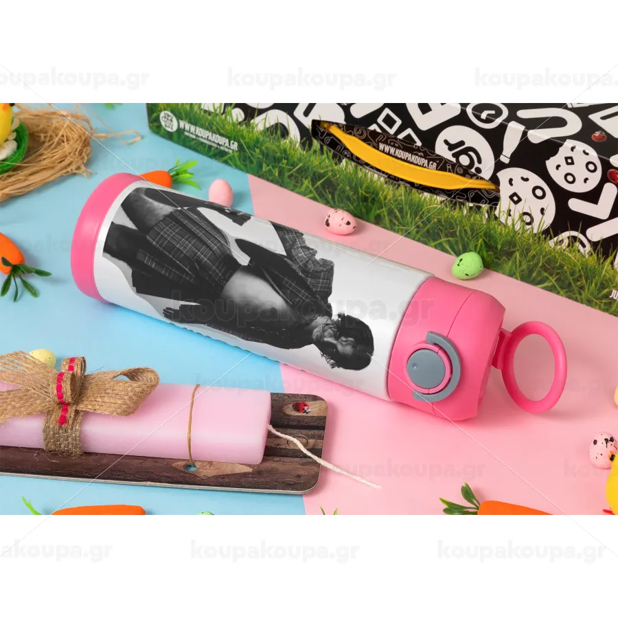 Maneskin Damiano David, Πασχαλινή Λαμπάδα με Παιδικό παγούρι θερμό, ανοξείδωτο, με καλαμάκι ασφαλείας, ΡΟΖ (500ml)
