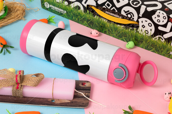Marshmello, Πασχαλινή Λαμπάδα με Παιδικό παγούρι θερμό, ανοξείδωτο, με καλαμάκι ασφαλείας, ΡΟΖ (500ml)