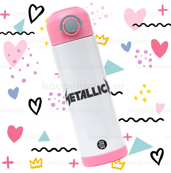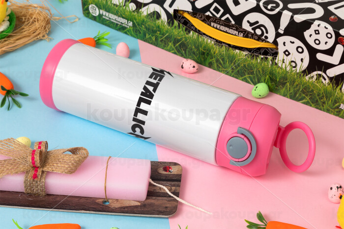 Metallica, Πασχαλινή Λαμπάδα με Παιδικό παγούρι θερμό, ανοξείδωτο, με καλαμάκι ασφαλείας, ΡΟΖ (500ml)
