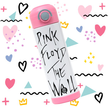 Pink Floyd, The Wall, Πασχαλινή Λαμπάδα με Παιδικό παγούρι θερμό, ανοξείδωτο, με καλαμάκι ασφαλείας, ΡΟΖ (500ml)
