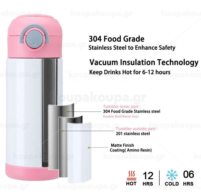 Ανοξείδωτο Θερμό Μπουκάλι για Παιδιά - Η Ασφαλής και Πράσινη Επιλογή! Τέλος τα πλαστικά μπουκάλια! Παρουσιάζουμε το απόλυτο μπουκάλι θερμό για τα παιδιά σας! Κατασκευασμένο από ανοξείδωτο ατσάλι, το μπουκάλι μας χωράει 500ml υγρό και είναι ιδανικό για το σχολείο και τις υπαίθριες δραστηριότητες. Με το απαλό άκρο, οι μικροί μας φίλοι μπορούν να πίνουν κατευθείαν από το μπουκάλι χωρίς καλαμάκι. Το ευρύ άνοιγμα του μας επιτρέπει να το καθαρίσουμε εύκολα για άψογη υγιεινή! Λαβή για εύκολη μεταφορά, καπάκι βιδωτό για ασφάλεια και λαβή για άνετο κράτημα. Επίσης, το μπουκάλι μας είναι BPA FREE, διατηρεί το πόσιμο δροσερό και δροσιστικό έξω από το ψυγείο. Κάντε την πράσινη επιλογή για τα παιδιά σας! Προμηθευτείτε το δικό σας ανοξείδωτο θερμό μπουκάλι τώρα!