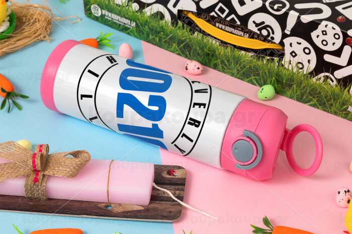 Beverly Hills, 90210, Πασχαλινή Λαμπάδα με Παιδικό παγούρι θερμό, ανοξείδωτο, με καλαμάκι ασφαλείας, ΡΟΖ (500ml)