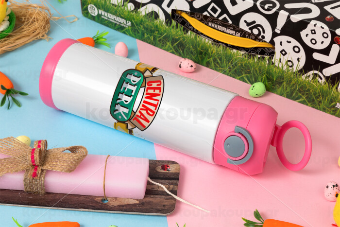 Central perk, Πασχαλινή Λαμπάδα με Παιδικό παγούρι θερμό, ανοξείδωτο, με καλαμάκι ασφαλείας, ΡΟΖ (500ml)