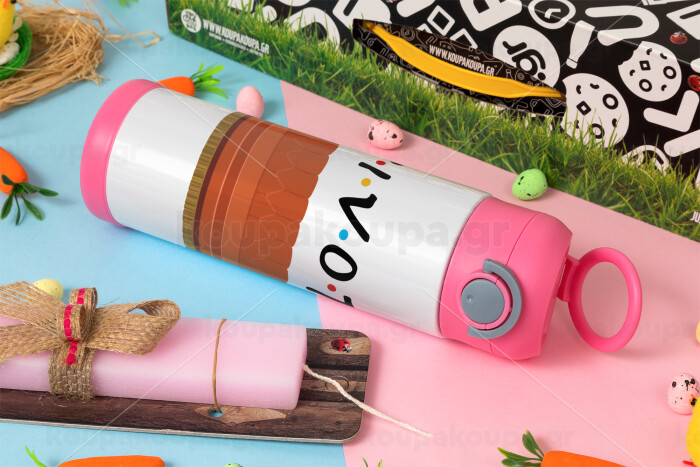 Friends Pivot, Πασχαλινή Λαμπάδα με Παιδικό παγούρι θερμό, ανοξείδωτο, με καλαμάκι ασφαλείας, ΡΟΖ (500ml)