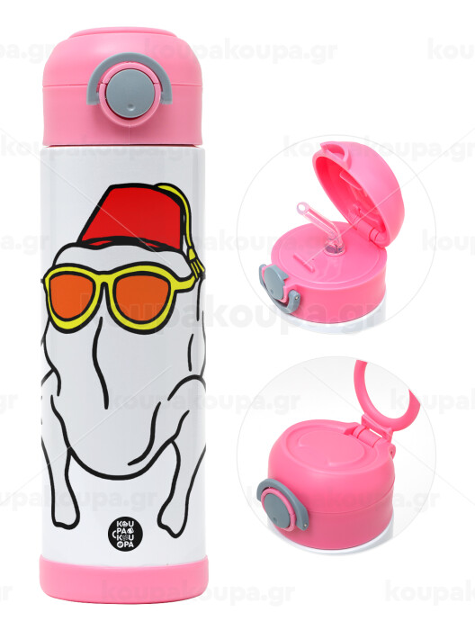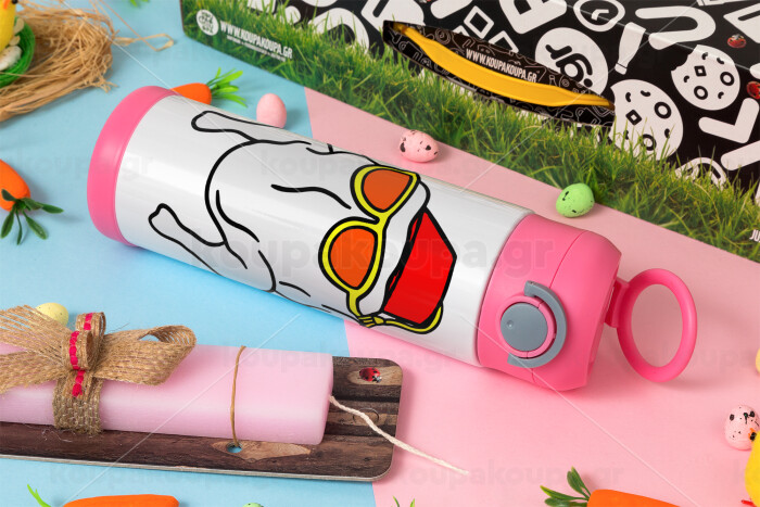 Friends turkey, Πασχαλινή Λαμπάδα με Παιδικό παγούρι θερμό, ανοξείδωτο, με καλαμάκι ασφαλείας, ΡΟΖ (500ml)