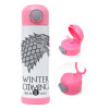 GOT House of Starks, winter coming, Πασχαλινή Λαμπάδα με Παιδικό παγούρι θερμό, ανοξείδωτο, με καλαμάκι ασφαλείας, ΡΟΖ (500ml)