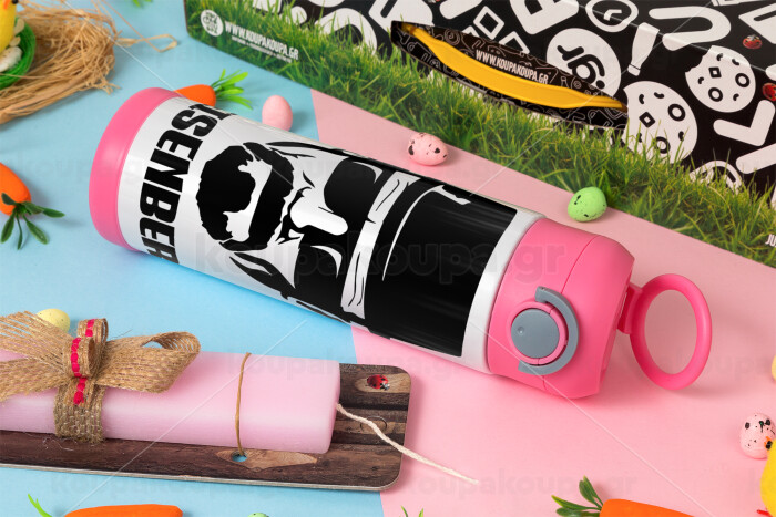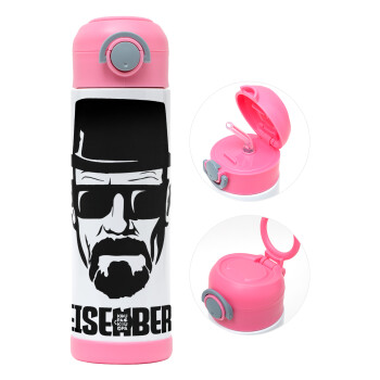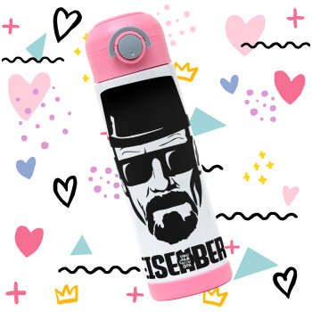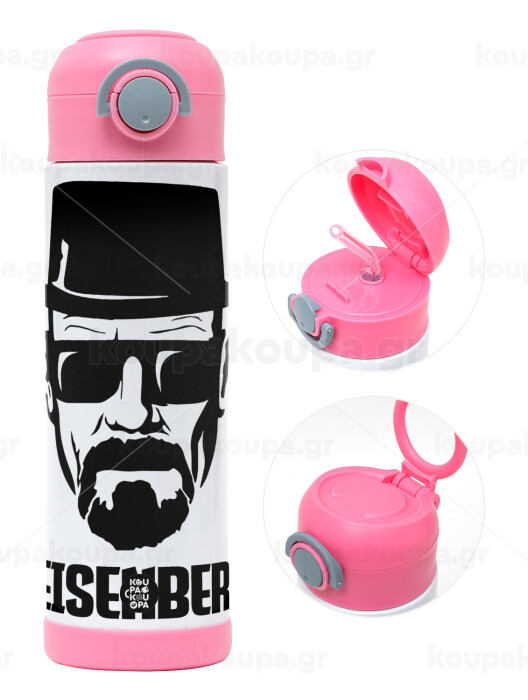 Heisenberg breaking bad, Πασχαλινή Λαμπάδα με Παιδικό παγούρι θερμό, ανοξείδωτο, με καλαμάκι ασφαλείας, ΡΟΖ (500ml)