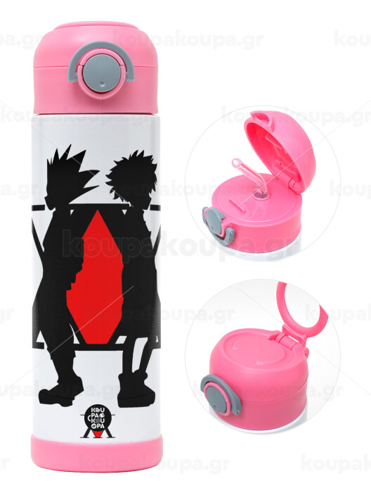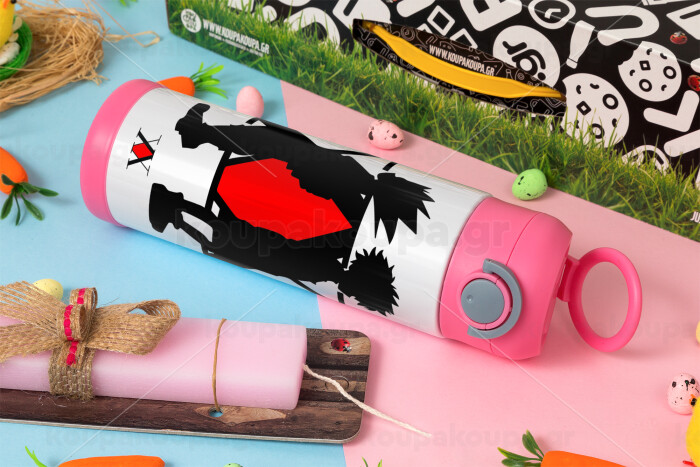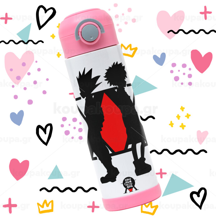 hunter x hunter, Πασχαλινή Λαμπάδα με Παιδικό παγούρι θερμό, ανοξείδωτο, με καλαμάκι ασφαλείας, ΡΟΖ (500ml)