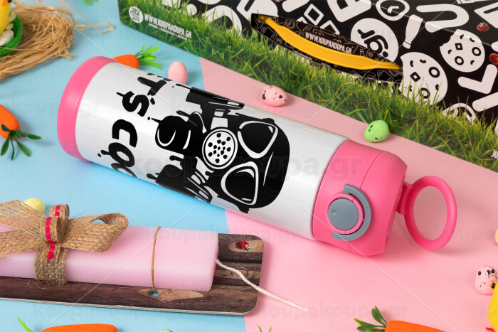 Let's cook mask, Πασχαλινή Λαμπάδα με Παιδικό παγούρι θερμό, ανοξείδωτο, με καλαμάκι ασφαλείας, ΡΟΖ (500ml)