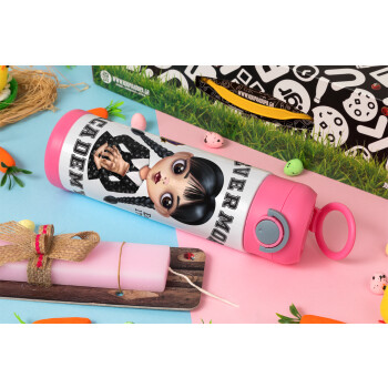 Wednesday Adams, nevermore, Πασχαλινή Λαμπάδα με Παιδικό παγούρι θερμό, ανοξείδωτο, με καλαμάκι ασφαλείας, ΡΟΖ (500ml)