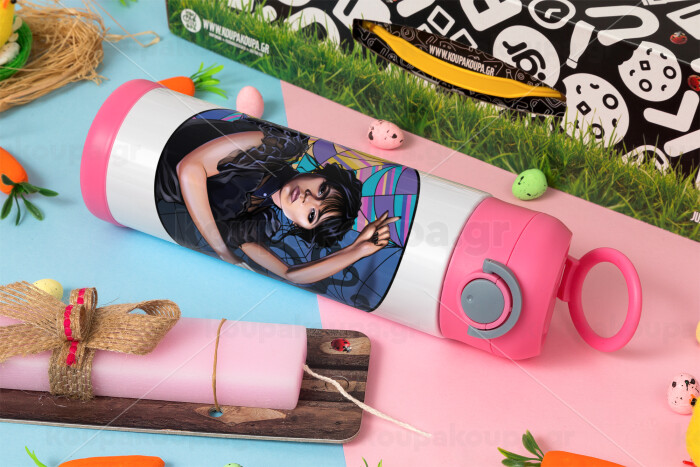 Wednesday dance, Πασχαλινή Λαμπάδα με Παιδικό παγούρι θερμό, ανοξείδωτο, με καλαμάκι ασφαλείας, ΡΟΖ (500ml)