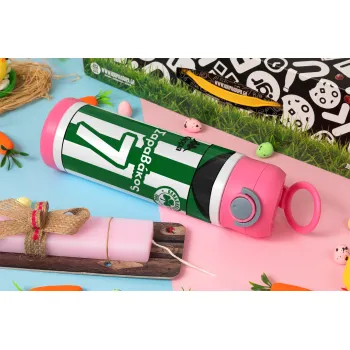 Παναθηναϊκός εμφάνιση, Πασχαλινή Λαμπάδα με Παιδικό παγούρι θερμό, ανοξείδωτο, με καλαμάκι ασφαλείας, ΡΟΖ (500ml)