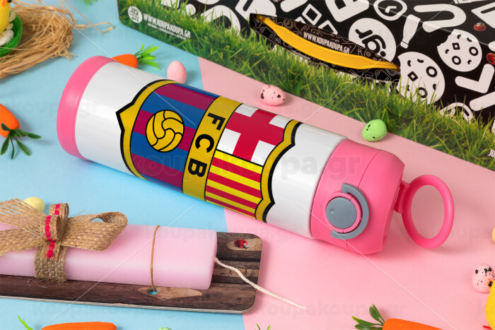 Barcelona FC, Πασχαλινή Λαμπάδα με Παιδικό παγούρι θερμό, ανοξείδωτο, με καλαμάκι ασφαλείας, ΡΟΖ (500ml)