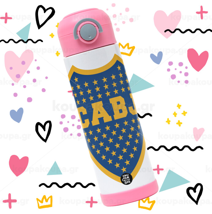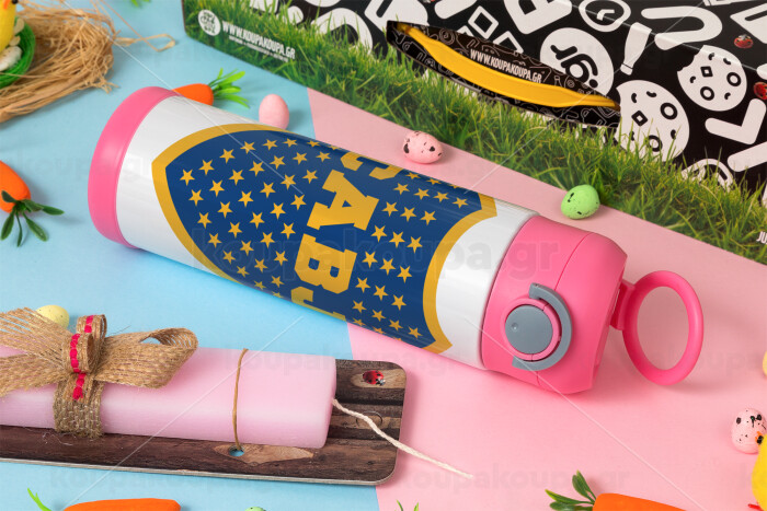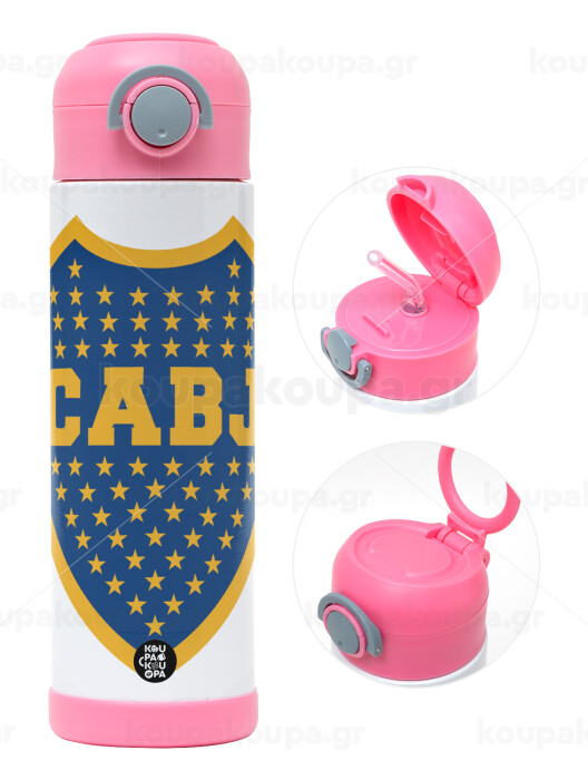 Club Atlético Boca Juniors, Πασχαλινή Λαμπάδα με Παιδικό παγούρι θερμό, ανοξείδωτο, με καλαμάκι ασφαλείας, ΡΟΖ (500ml)