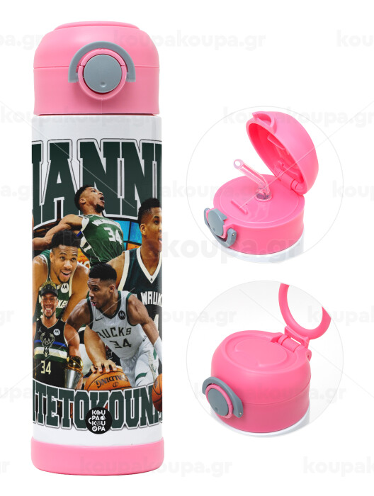 Giannis Antetokounmpo, Πασχαλινή Λαμπάδα με Παιδικό παγούρι θερμό, ανοξείδωτο, με καλαμάκι ασφαλείας, ΡΟΖ (500ml)