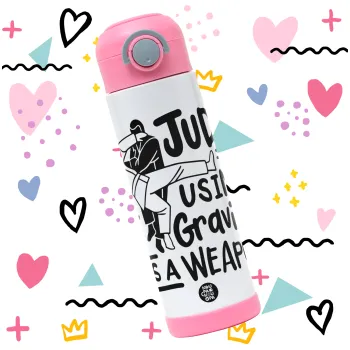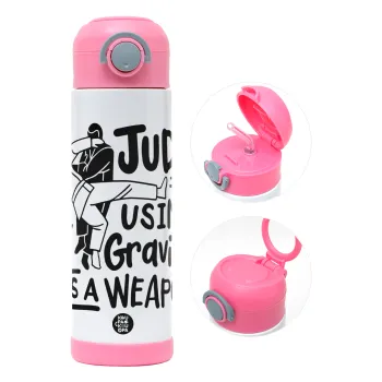 Judo using gravity as a weapon, Πασχαλινή Λαμπάδα με Παιδικό παγούρι θερμό, ανοξείδωτο, με καλαμάκι ασφαλείας, ΡΟΖ (500ml)