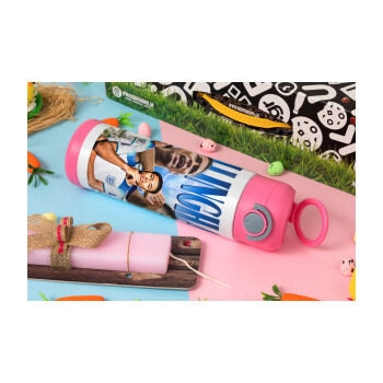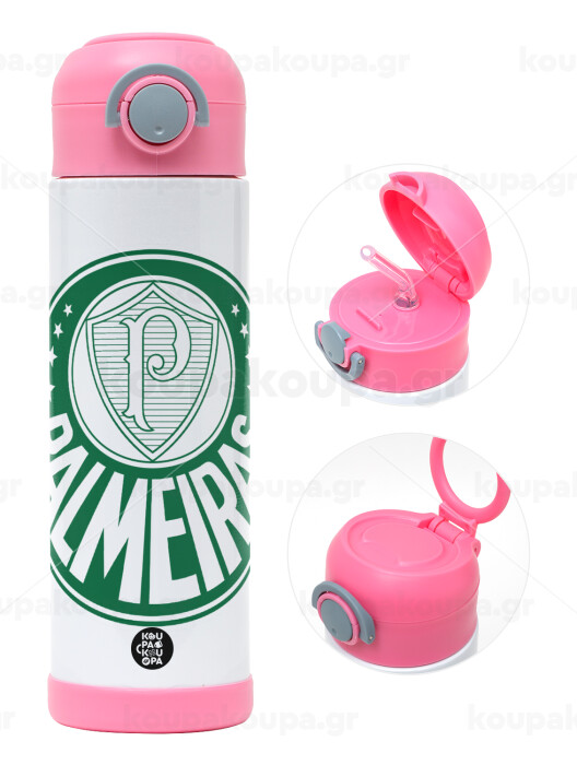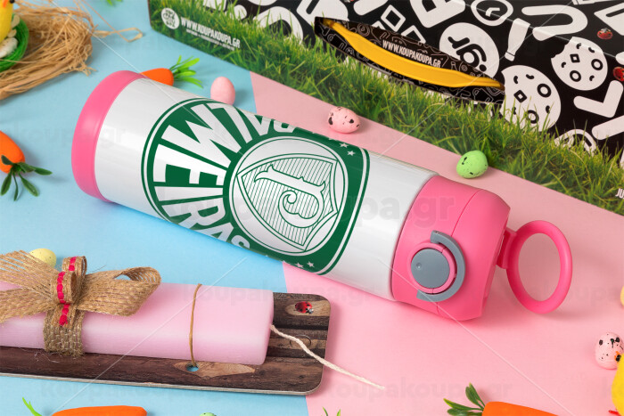 Palmeiras, Πασχαλινή Λαμπάδα με Παιδικό παγούρι θερμό, ανοξείδωτο, με καλαμάκι ασφαλείας, ΡΟΖ (500ml)