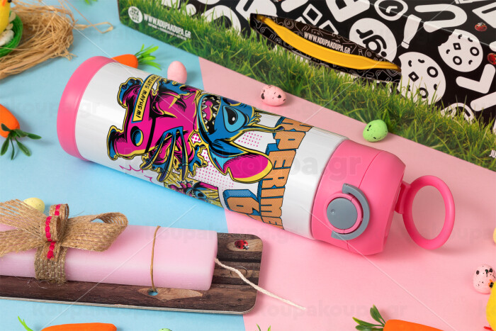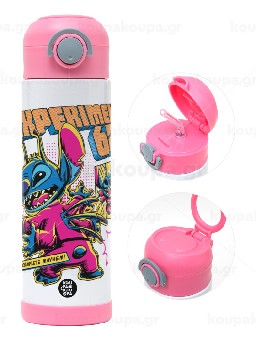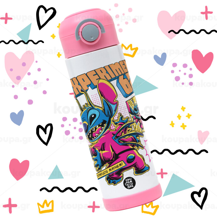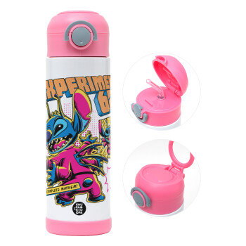 Stitch Experiment 626, Πασχαλινή Λαμπάδα με Παιδικό παγούρι θερμό, ανοξείδωτο, με καλαμάκι ασφαλείας, ΡΟΖ (500ml)