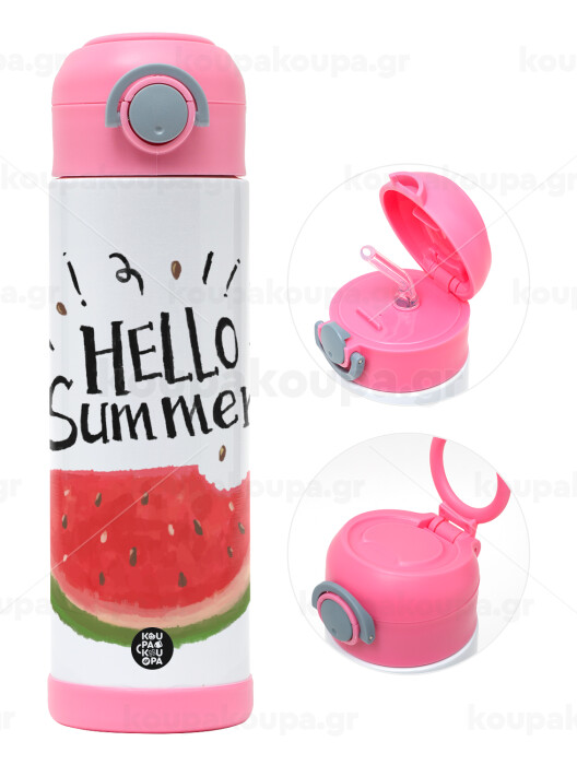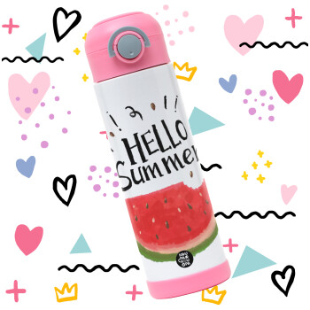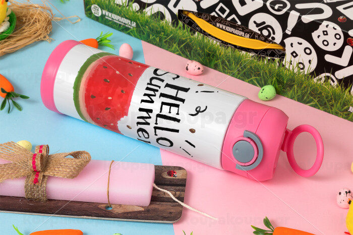 Summer Watermelon, Πασχαλινή Λαμπάδα με Παιδικό παγούρι θερμό, ανοξείδωτο, με καλαμάκι ασφαλείας, ΡΟΖ (500ml)