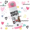 Είμαστε αχώριστοι, Πασχαλινή Λαμπάδα με Παιδικό παγούρι θερμό, ανοξείδωτο, με καλαμάκι ασφαλείας, ΡΟΖ (500ml)