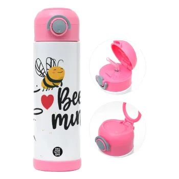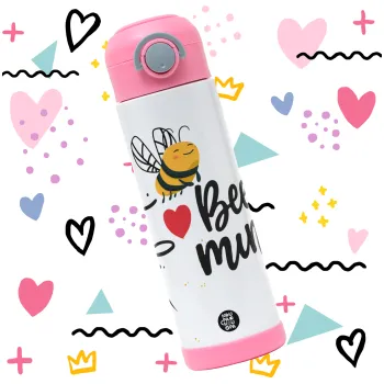 Bee mine!!!, Πασχαλινή Λαμπάδα με Παιδικό παγούρι θερμό, ανοξείδωτο, με καλαμάκι ασφαλείας, ΡΟΖ (500ml)