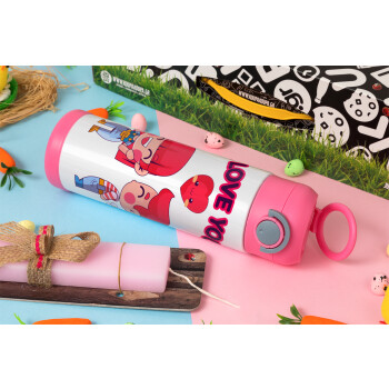 Couple, I love you, Πασχαλινή Λαμπάδα με Παιδικό παγούρι θερμό, ανοξείδωτο, με καλαμάκι ασφαλείας, ΡΟΖ (500ml)