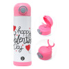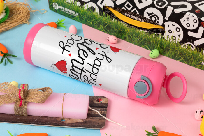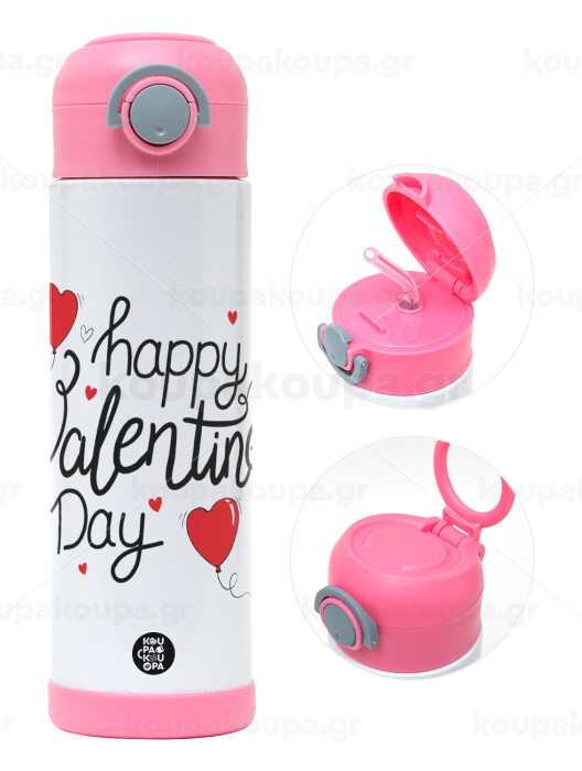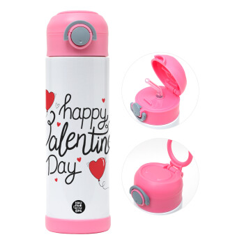 Happy Valentines Day!!!, Πασχαλινή Λαμπάδα με Παιδικό παγούρι θερμό, ανοξείδωτο, με καλαμάκι ασφαλείας, ΡΟΖ (500ml)