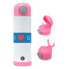 I Love You text message, Πασχαλινή Λαμπάδα με Παιδικό παγούρι θερμό, ανοξείδωτο, με καλαμάκι ασφαλείας, ΡΟΖ (500ml)