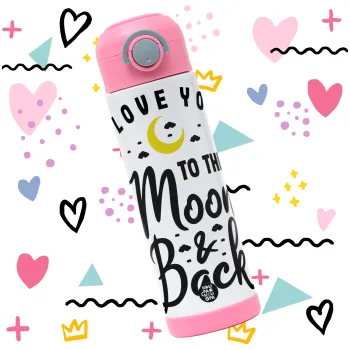 I love you to the moon and back, Πασχαλινή Λαμπάδα με Παιδικό παγούρι θερμό, ανοξείδωτο, με καλαμάκι ασφαλείας, ΡΟΖ (500ml)