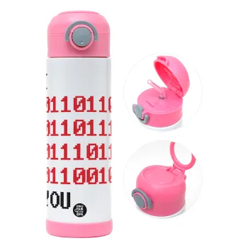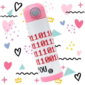 I .... YOU, binary secret MSG, Πασχαλινή Λαμπάδα με Παιδικό παγούρι θερμό, ανοξείδωτο, με καλαμάκι ασφαλείας, ΡΟΖ (500ml)