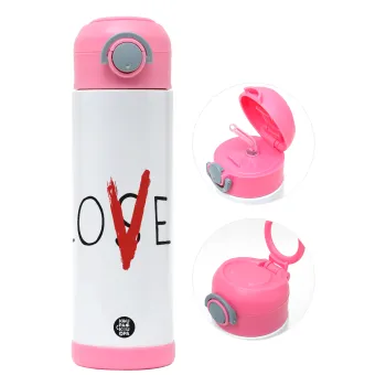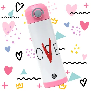 IT Lov(s)er, Πασχαλινή Λαμπάδα με Παιδικό παγούρι θερμό, ανοξείδωτο, με καλαμάκι ασφαλείας, ΡΟΖ (500ml)