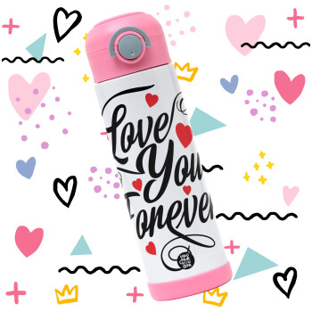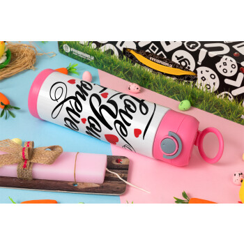 Love you forever, Πασχαλινή Λαμπάδα με Παιδικό παγούρι θερμό, ανοξείδωτο, με καλαμάκι ασφαλείας, ΡΟΖ (500ml)