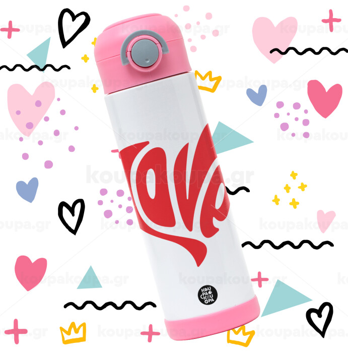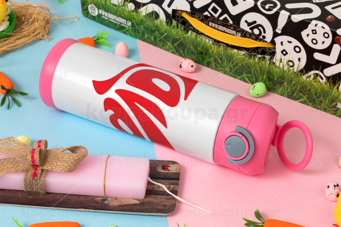 Love, Πασχαλινή Λαμπάδα με Παιδικό παγούρι θερμό, ανοξείδωτο, με καλαμάκι ασφαλείας, ΡΟΖ (500ml)
