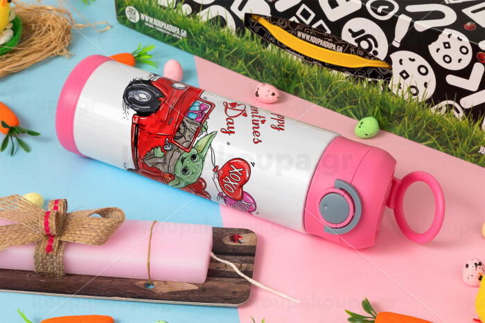 Yoda, happy valentines day (xoxo), Πασχαλινή Λαμπάδα με Παιδικό παγούρι θερμό, ανοξείδωτο, με καλαμάκι ασφαλείας, ΡΟΖ (500ml)
