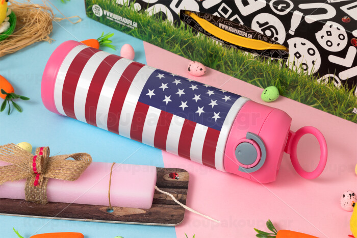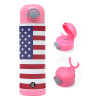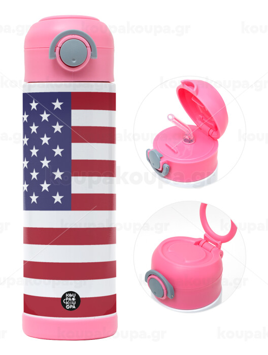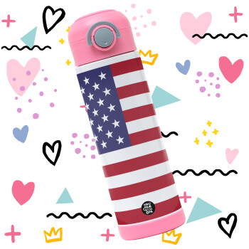 Σημαία Αμερικής, Πασχαλινή Λαμπάδα με Παιδικό παγούρι θερμό, ανοξείδωτο, με καλαμάκι ασφαλείας, ΡΟΖ (500ml)