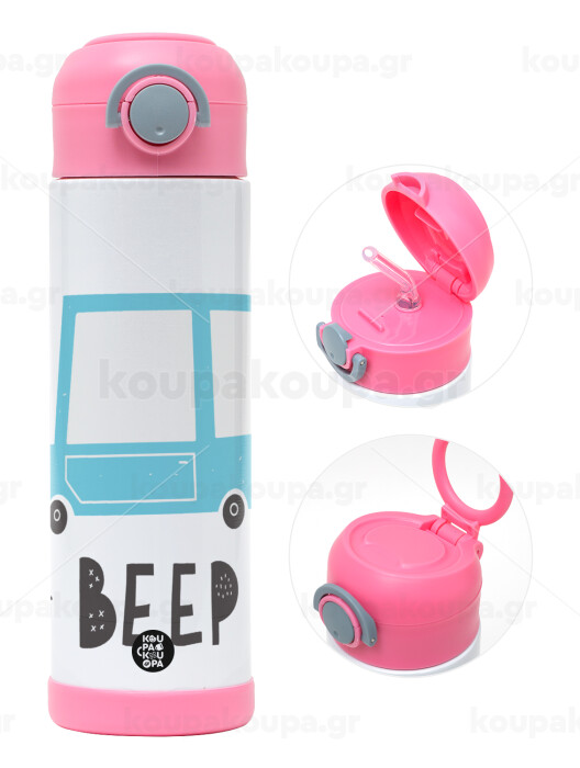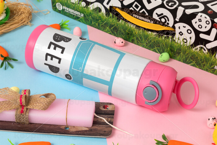Car BEEP..., Πασχαλινή Λαμπάδα με Παιδικό παγούρι θερμό, ανοξείδωτο, με καλαμάκι ασφαλείας, ΡΟΖ (500ml)