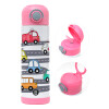 Hand drawn childish set with cars, Πασχαλινή Λαμπάδα με Παιδικό παγούρι θερμό, ανοξείδωτο, με καλαμάκι ασφαλείας, ΡΟΖ (500ml)