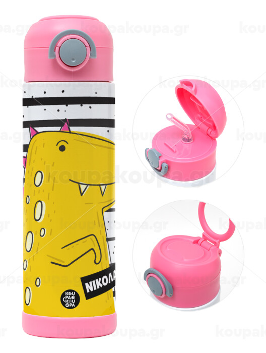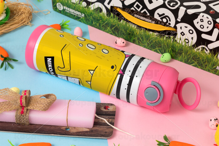 t-rex , Πασχαλινή Λαμπάδα με Παιδικό παγούρι θερμό, ανοξείδωτο, με καλαμάκι ασφαλείας, ΡΟΖ (500ml)