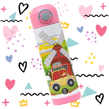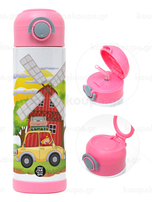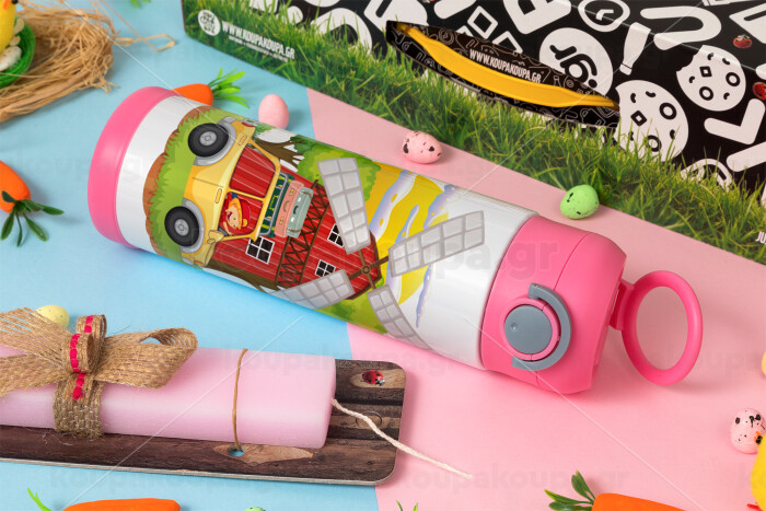 Toy car, Πασχαλινή Λαμπάδα με Παιδικό παγούρι θερμό, ανοξείδωτο, με καλαμάκι ασφαλείας, ΡΟΖ (500ml)