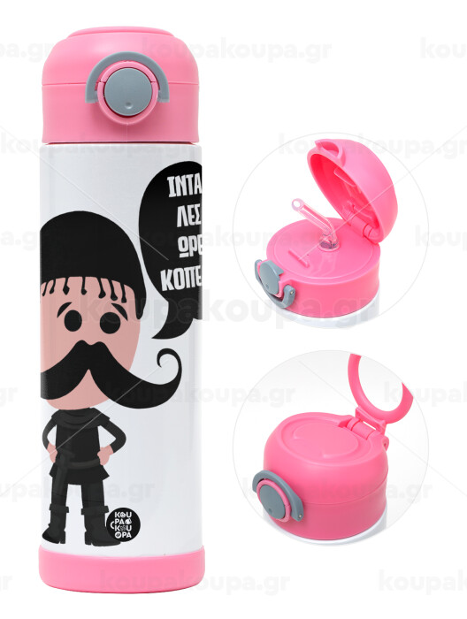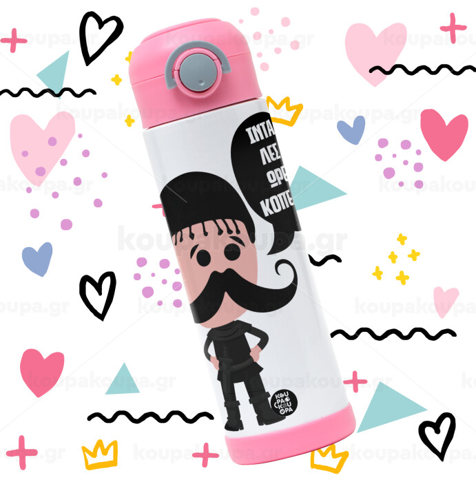 Κρητικός "Ίντα λες ωρέ κοπέλι", Πασχαλινή Λαμπάδα με Παιδικό παγούρι θερμό, ανοξείδωτο, με καλαμάκι ασφαλείας, ΡΟΖ (500ml)