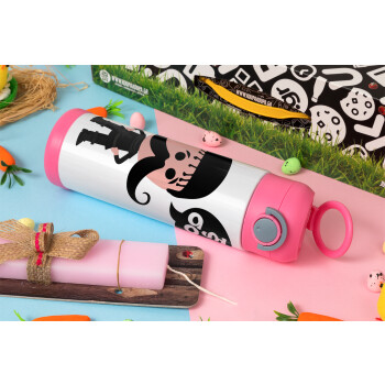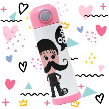 Κρητικός "Ξα σου", Πασχαλινή Λαμπάδα με Παιδικό παγούρι θερμό, ανοξείδωτο, με καλαμάκι ασφαλείας, ΡΟΖ (500ml)