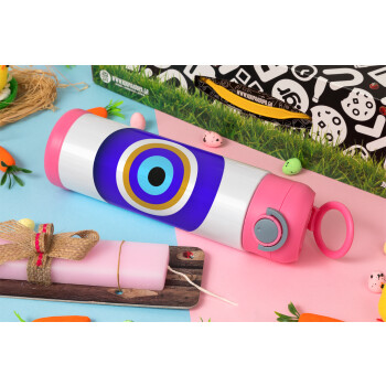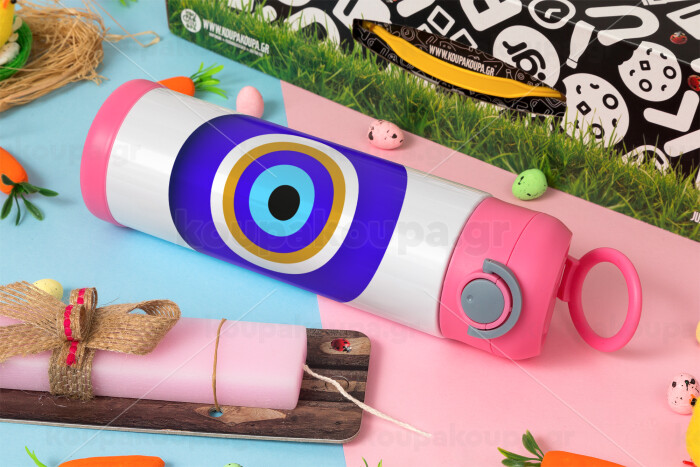Το μάτι, Πασχαλινή Λαμπάδα με Παιδικό παγούρι θερμό, ανοξείδωτο, με καλαμάκι ασφαλείας, ΡΟΖ (500ml)
